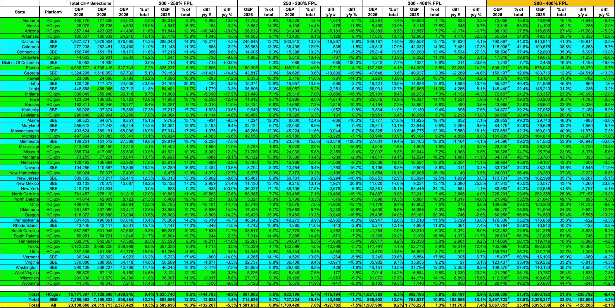 • First, they were the least-impacted by the enhanced subsidies expiring (most of them still saw their premiums jump dramatically, just not as dramatically as those below 200% FPL or over 400% FPL)