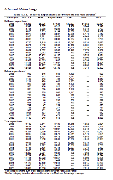 I also had no idea what the per beneficiary cost trends had been, since the information is almost completely hidden. Don't really think CMS is trying to fool or deceive us; I have concluded that the individual claims are not reported with other Part A or Part B spending because MA claims are paid by the MA Plan Payers, not Medicare central.