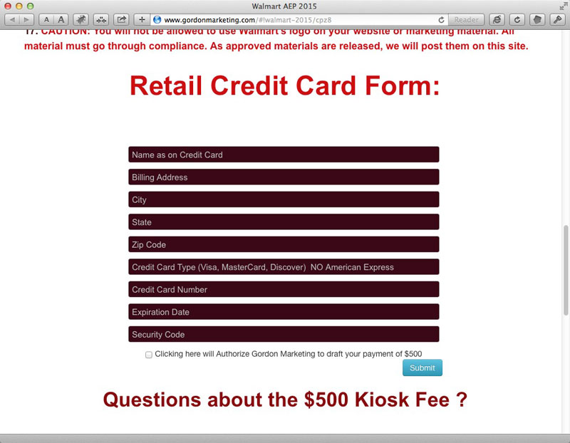 This marketing website is asking for insurance agents to make their $500 kiosk fee by entering credit card data on an insecure website...and it then expects these same agents to enter other people's sensitive information, including social security numbers/etc, into the GoHealthInsurance.com and/or Healthcare.gov/other state exchange websites.