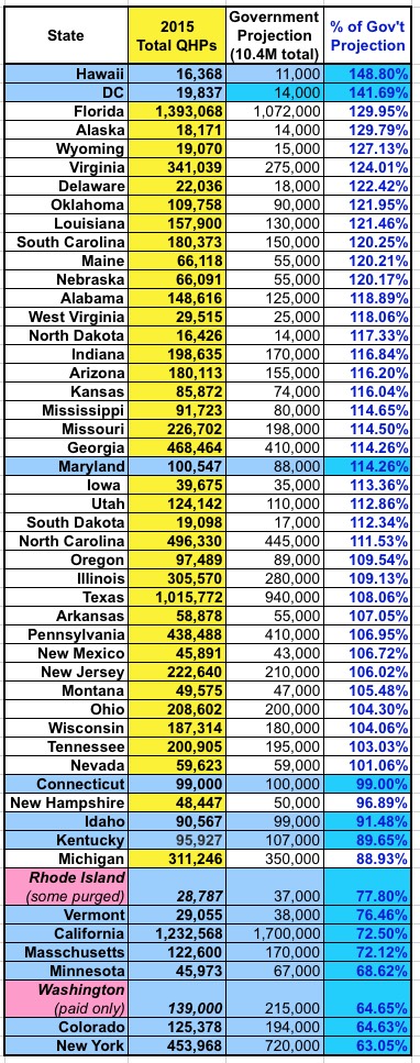 3) For Rhode Island and Washington, I'm using a different number than the other states; RI is the QHP selections, but after past-due non-paid ones have been purged from the total; in WA, they're only reporting the paid QHPs at all, so I don't know what the total selections are to begin with.