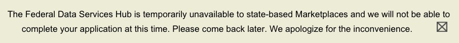 Assuming the issue isn't resolved quickly, this could put a damper on the final state exchange enrollments as well; as I just noted, here's what currently appears at the top of the Massachusetts Health Connector site: