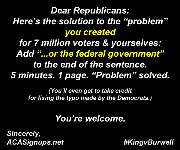 Dear Republicans: Here's an easy way out of King v. Burwell for you...
