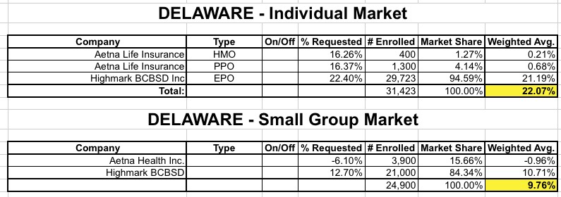 At first glance, of course, it looks like I'm saying that after going through the regulatory approval process, the individual health insurance premium rates in Delaware are being reduced by 11.4% next year! Hooray!