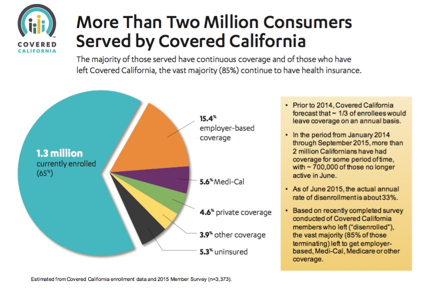 “While the majority of consumers stay with Covered California, the good news is that most of those who move on enroll in another source of coverage and remain insured,” Lee said.