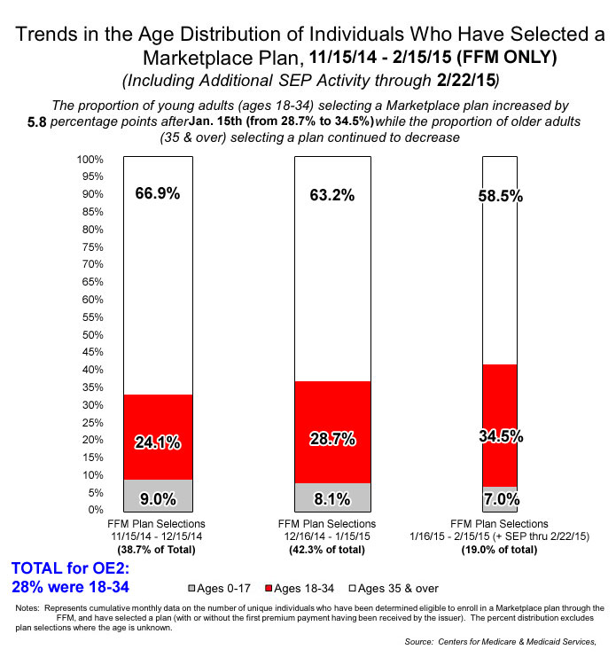 HOWEVER, there's an important caveat to keep in mind: Young people tend to procrastinate. For the first two years of Open Enrollment, the proportion of younger enrollees increased substantially towards the end of the enrollment period.