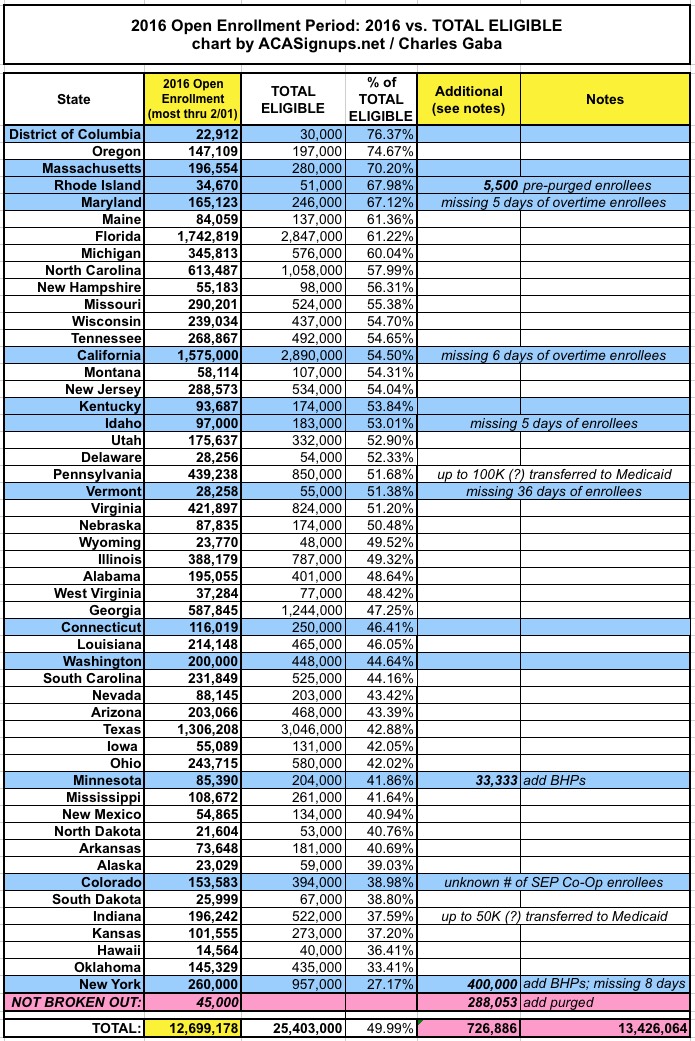 UPDATED: STATE BY STATE: How every state* did this year vs. 2015, vs. projections & vs. total eligible!