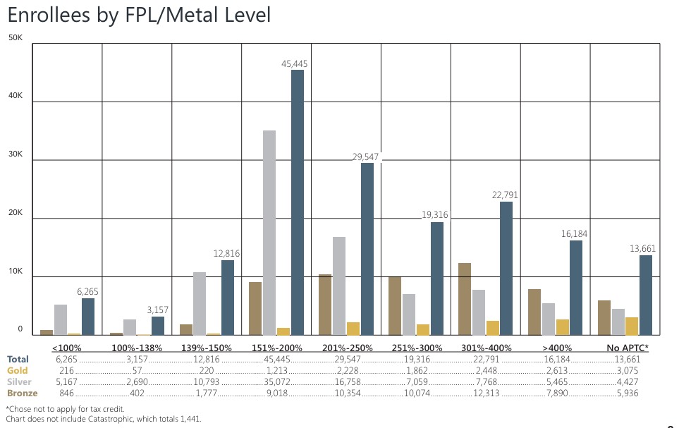 - Silver-level plans see the greatest gains. Enrollment in silver-level plans increased by greater than 10,000 customers since last year — the largest hike of any metal level — to include more than 95,000 enrollees in 2016. Nearly 56 percent of all Qualified Health Plan customers enrolled in silver-level plans.