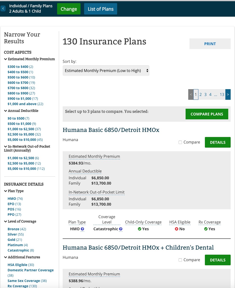 As a reminder: In order to receive federal financial assistance for helping pay for your policy, you have to enroll via either HealthCare.Gov or one of the state-based exchanges. However, if your income is over 400% of the federal poverty line (around $97,000 for a family of 4), or you have to pay full price for some other reason, it might make more sense to enroll directly through a carrier, which saves jumping through some paperwork hoops. That's where the Plan Finder comes in.