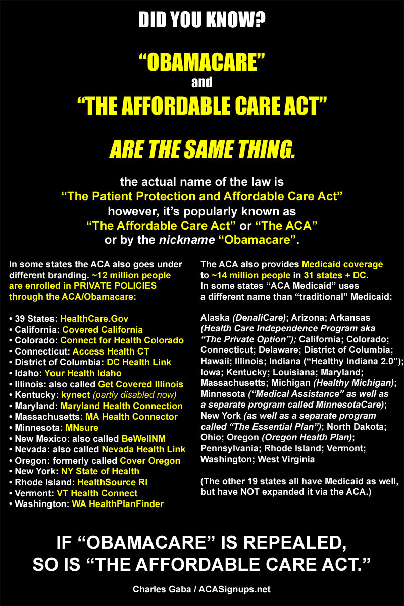 There's been a lot of buzz lately about Trump voters (and, sadly, even some non-Trumpsters) who aren't aware the "Obamacare" and "The Affordable Care Act" are the same thing, to the point that I've whipped up the graphic below.