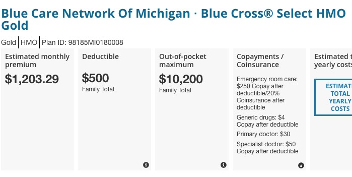 ...while the BCN Gold plan costs the full $1,203/month (again, with only a $500 deductible):