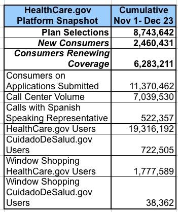 - 66,324 additional new enrollees were added between 12/15 - 12/23, however