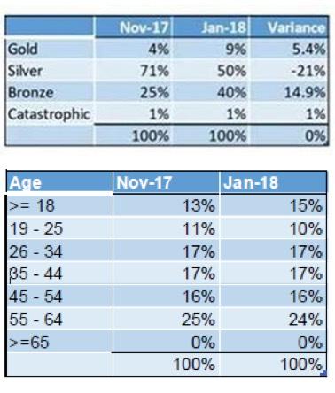 We have seen a lot of customer behavior around shopping and, of course, the usual rush at the end of open enrollment which is tonight. The lack of federal Cost Sharing Reductions, or CSR’s, has caused some shifts in the silver plans and the other metal tiers. We have seen a 14-point movement from silver to gold and bronze. As of this morning, that increased 18 points, meaning about 18 percent of our customers from last year have moved from silver to bronze or gold. Bronze is up 13 points and gold is up 5 points. That is a high indication that increased tax credits made gold more affordable and resulted in some zero-cost premiums for bronze plans.