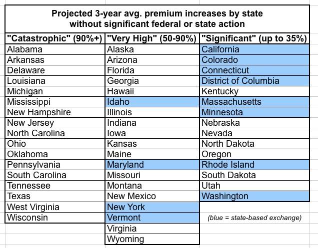 New study projects ACA sabotage will cause up to ~25% rate hikes next year alone, up to 62% over next 3 years depending on the state