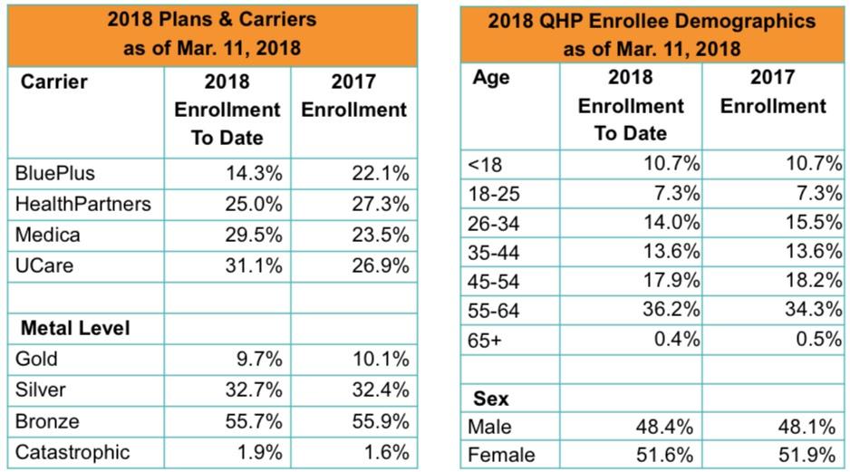 Oddly, according to the latest Enrollment Update from MNsure, as of March 14, 113,699 people had enrolled in 2018 Qualified Health Plans. Huh. I'm not sure how this jibes with the 116.4K figure...if it's showing effectuations, that would be 98% (which I highly doubt), but if it's showing cumultative totals it should be slightly higher as SEP enrollees are tacked onto the total.
