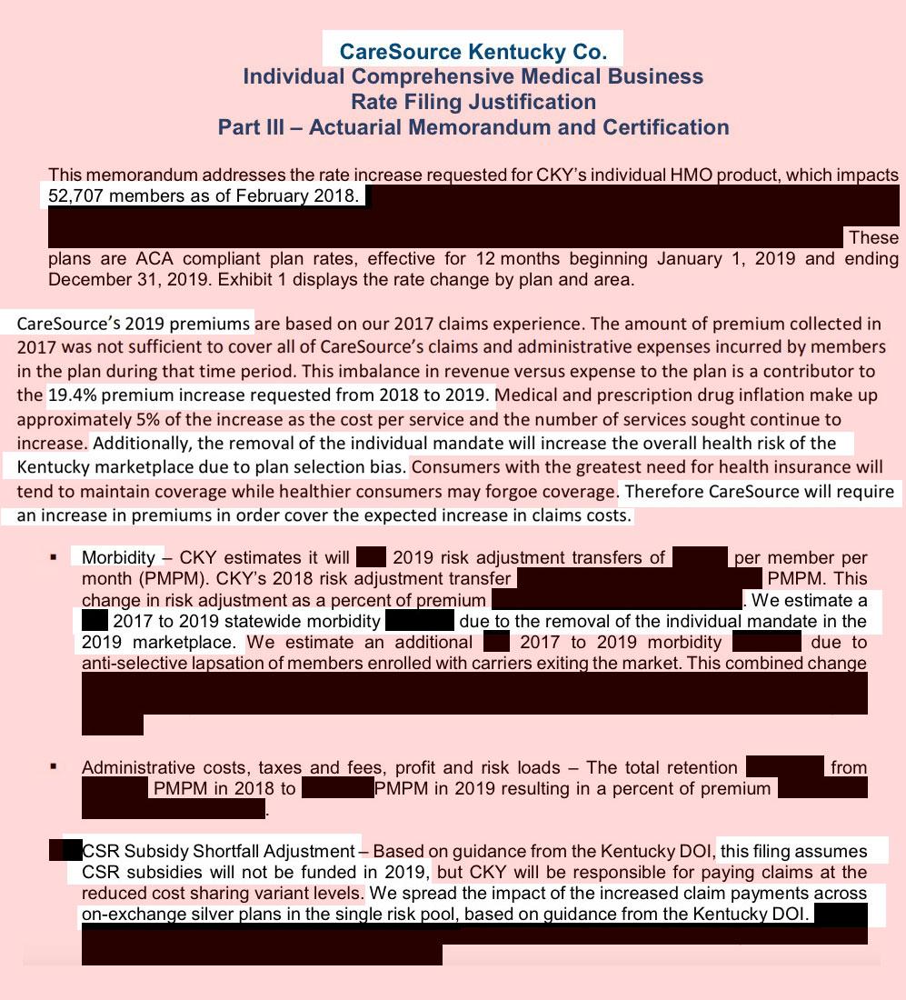 ALSO WORTH NOTING: According to the spreadsheet set up by Dave Anderson, Louise Norris, Andrew Sprung and myself last fall, Kentucky went the Silver Load route for CSR cost loading this year, but for 2019 it appears that the carriers have been instructed to go the full Silver Switcharoo route by only loading CSR costs onto on-exchange Silver plans (see CareSource filing below).