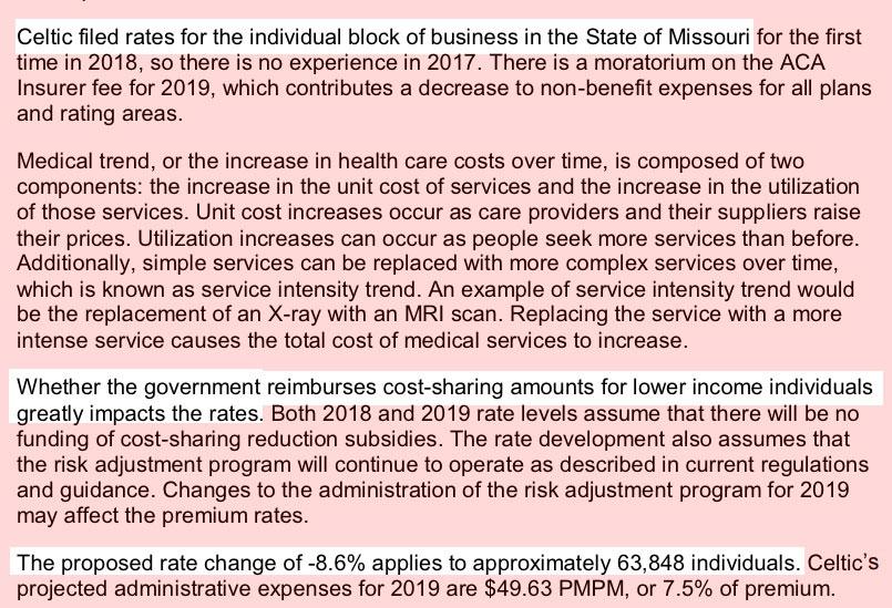 Missouri: Preliminary 2019 #ACA rate changes: 1.9% INCREASE instead of ~10.3% DECREASE w/out #ACASabotage