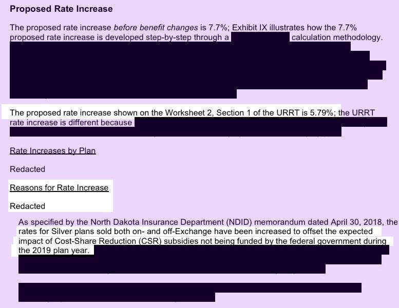 ...which, as it happens, is almost exactly the same amount that both Medica and Sanford Health plans are asking to raise their rates next year, which I'm sure is no coincidence. Note that all three carriers specifically call out the CSR factor in their filings.