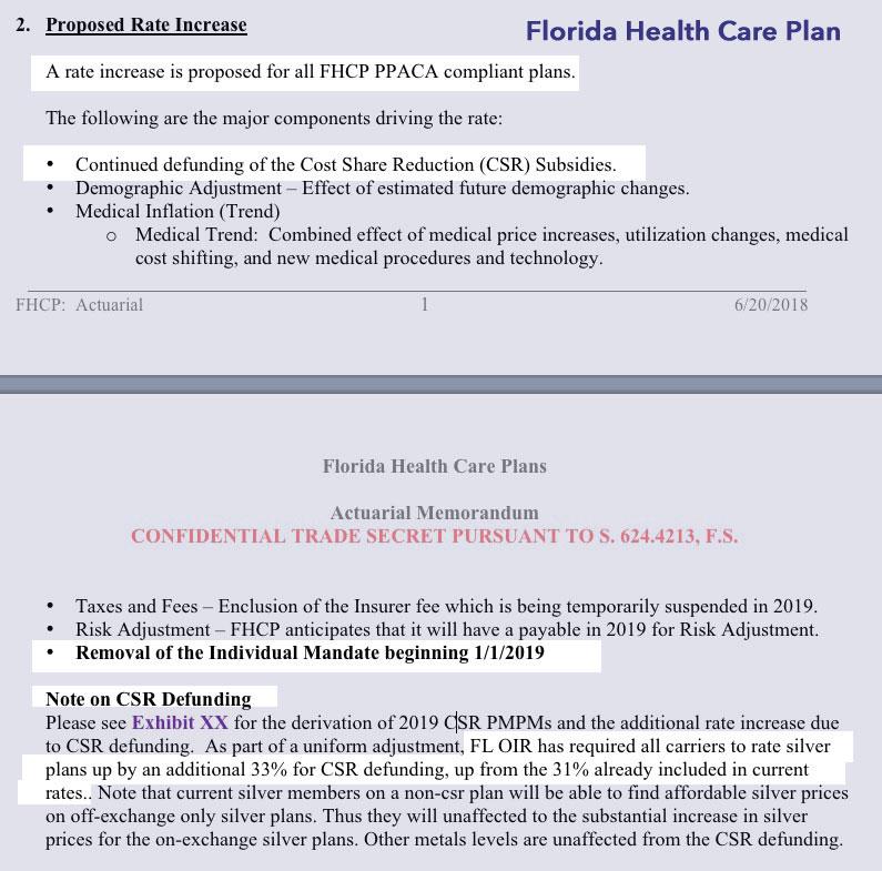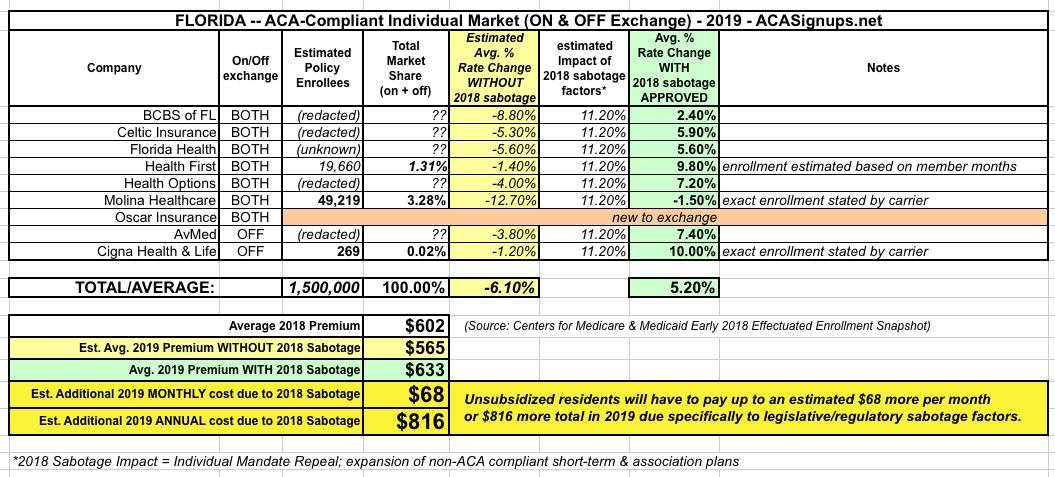 Florida: APPROVED 2019 #ACA rate hikes: Just 5.2%...but likely would have DROPPED ~6% without #ACASabotage