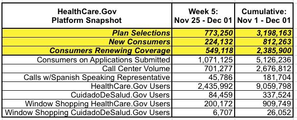 HC.gov releases Week 5 Open Enrollment Report: Still down 10.4% year over year
