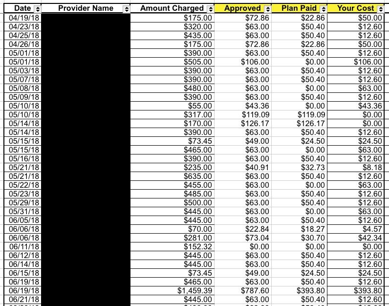 I know very little about HSAs, but Dave and Louise suggested I look into one so we did. In our particular case, we decided to stick with the Gold plan in the end for reasons I'd rather not get into...but along the way, while researching our actual 2018 medical claims and expenses, I noticed something rather important. See if you can figure out what it is:
