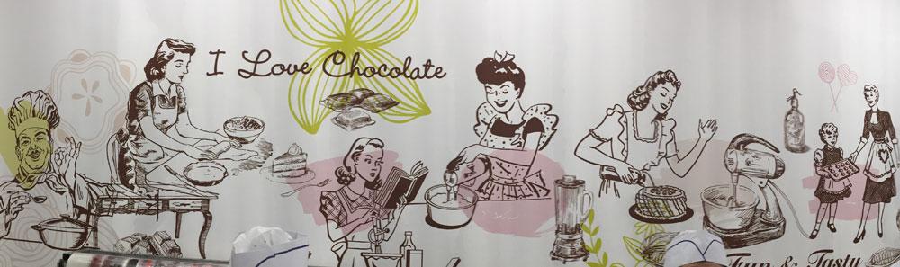 • A visit to the Schulmann Chocolate Museum (which, oddly enough, uses 1950's American "Betty Crocker Cookbook"-style artwork on the walls)