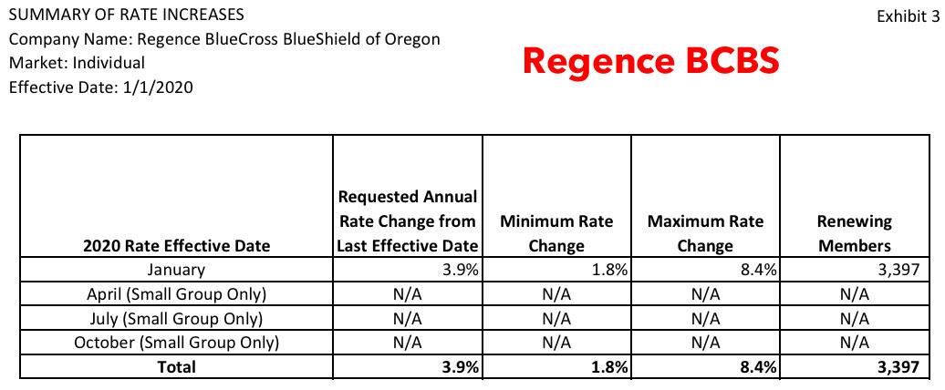 Oregon: PRELIMINARY 2020 ACA Exchange Premium Rate Changes: 3.3% increase