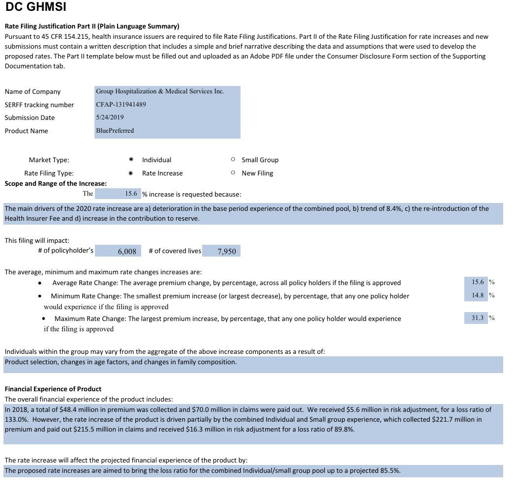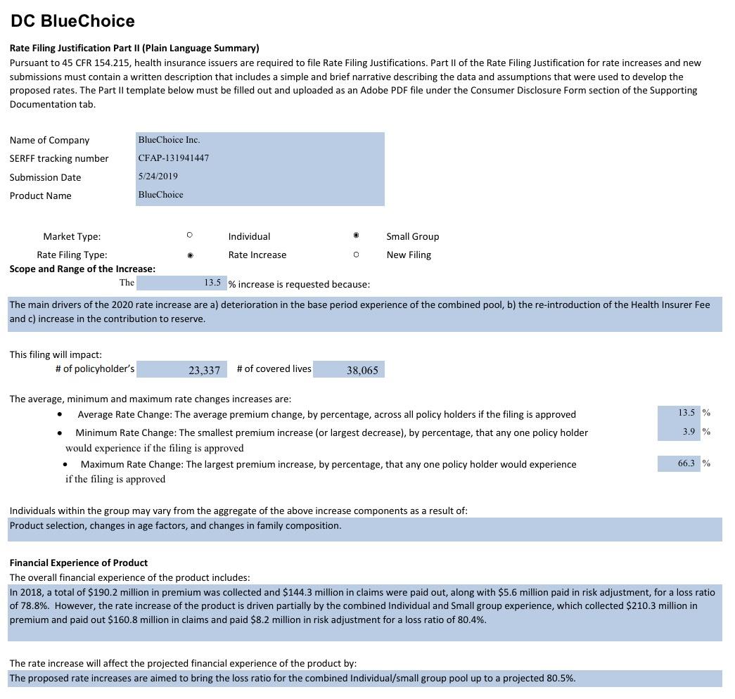 A week ago, the DC Dept. of Insurance, Securities and Banking (DISB) issued preliminary 2020 rate filings along with this press release: