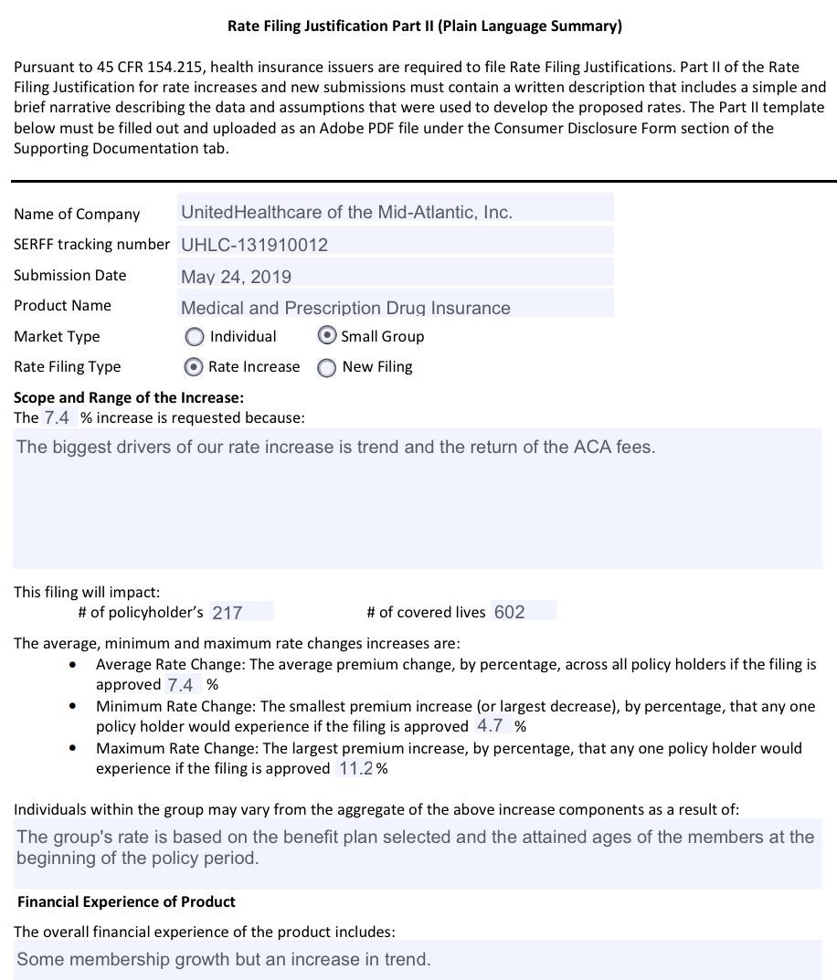 Overall individual rates increased an average of 9.0 percent and small group rates increased an average of 10.5 percent. In the individual market, CareFirst proposed an average increase of 7.7 percent for HMO plans, and 15.6 percent for PPO plans. Kaiser proposed an average increase of 5.0 percent. For small group plans, CareFirst filed average rate increases of 13.5 percent for HMO plans and 18.5 percent for the PPO plans. Kaiser small group rates proposed an average increase of 3.0 percent. Aetna filed for an average increase of 16.1 percent for HMO plans and 5.0 percent for PPO plans. Finally, United proposed an average increase of 13.0 percent and 7.4 percent for its two HMOs and 11.2 percent for its PPO plans.