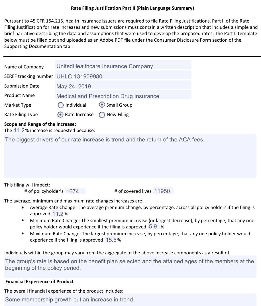 Oddly, when I plug in the hard numbers directly off of the actual filings, while the requested rate change percentages are the same as above, the weighted averages are somewhat different in both categories: