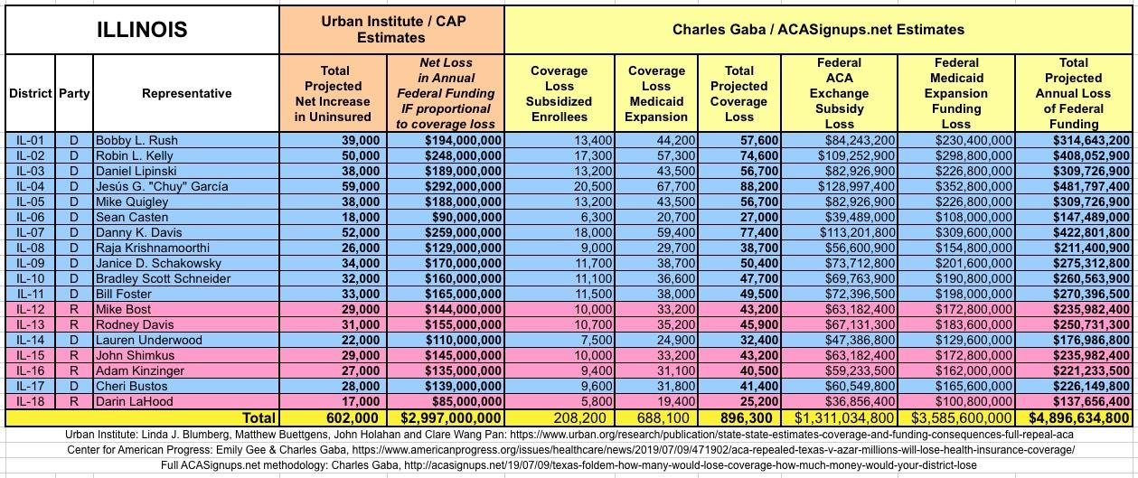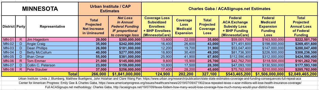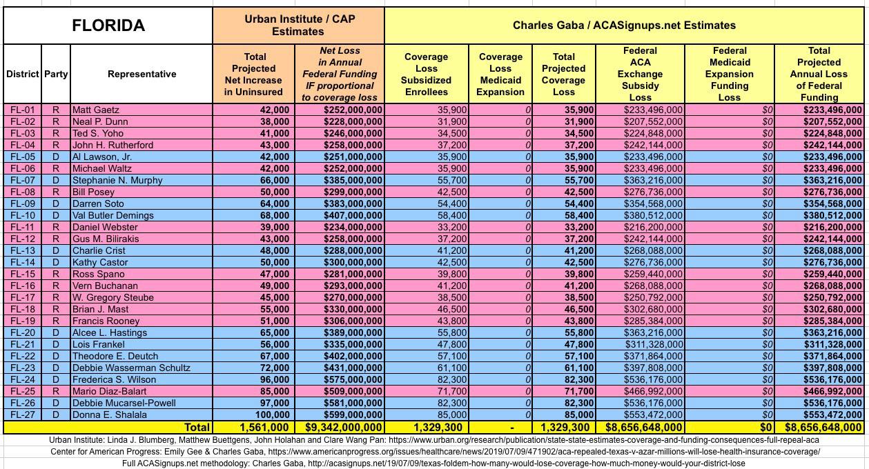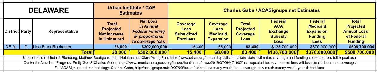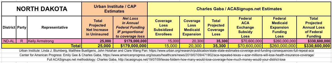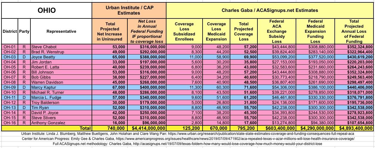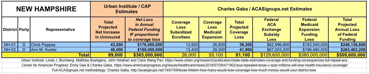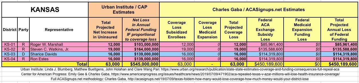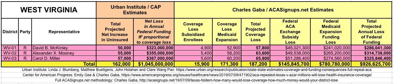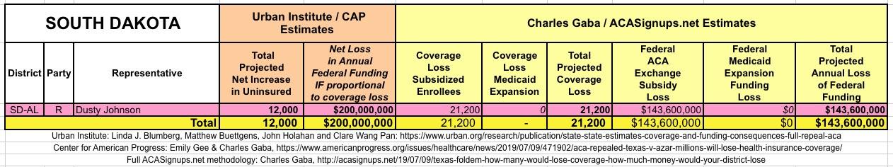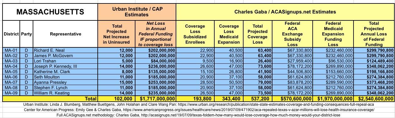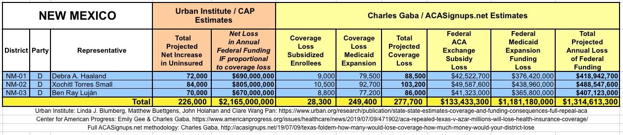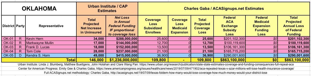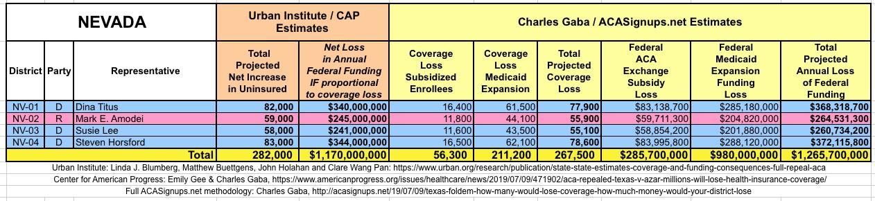 In March 2019, Linda J. Blumberg, Matthew Buettgens, John Holahan and Clare Wang Pan of the Urban Institute ran a detailed analysis to determine what the impact on healthcare coverage would be in every state if the Texas vs. U.S. lawsuit (aka Texas vs. Azar or #TexasFoldEm) caused the Patient Protection & Affordable Care Act (ACA) to be repealed with immediate effect.