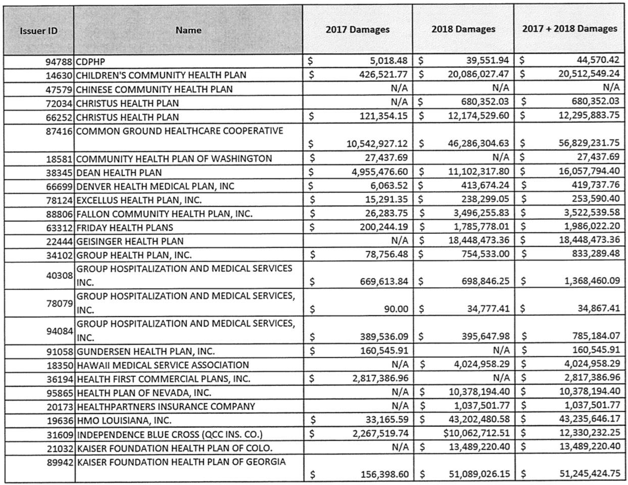 HOWEVER, it's important to remember that these 100 carriers only represent a portion of the total ACA individual market, which means the actual total (assuming the court rulings in other cases are similarly held up) could be several times that amount anyway, making my "up to quadruple" headline accurate anyway!
