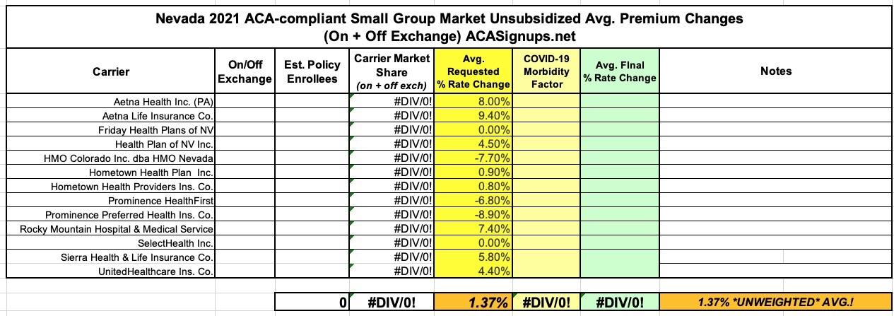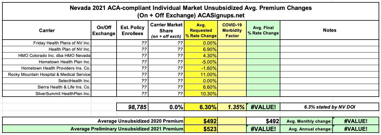 Nevada: Preliminary avg. 2021 #ACA premiums: +6.3%; #COVID19 factor: 1.4%