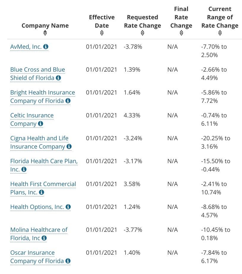 Florida: Preliminary avg. 2021 #ACA premiums: +1.8% individual market; +3.3% sm. group