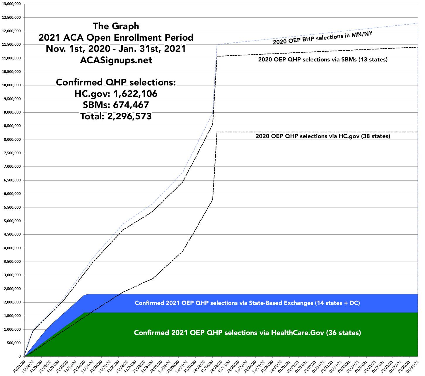 The reality is that The Graph itself doesn't serve a whole lot of useful function anymore. The enrollment patterns were erratic the first couple of years but have since settled into a pretty predictable...if not downright boring pattern for both the federal and state exchanges. The main reason I keep doing it each year is mostly out of tradition these days; after all, without The Graph, there wouldn't be an ACA Signups and I wouldn't have become a healthcare policy wonk in the first place.