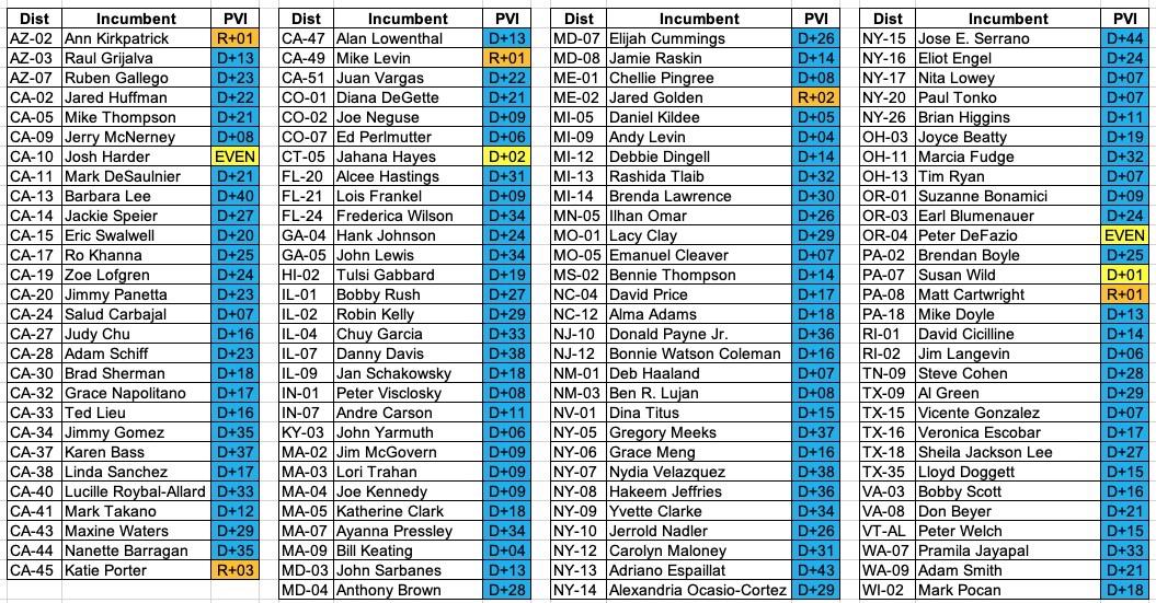 The average partisan lean of all 115 of these districts is D+19. Only nine of them are D+3 or worse.