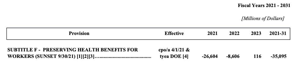 Again, I'm not a COBRA fan, and I'm not sure that I would've made the same call as the Biden Administration did, but it was a reasonable decision to make given the unique circumstances of the moment...especially given the time factor involved in getting the ARP signed.
