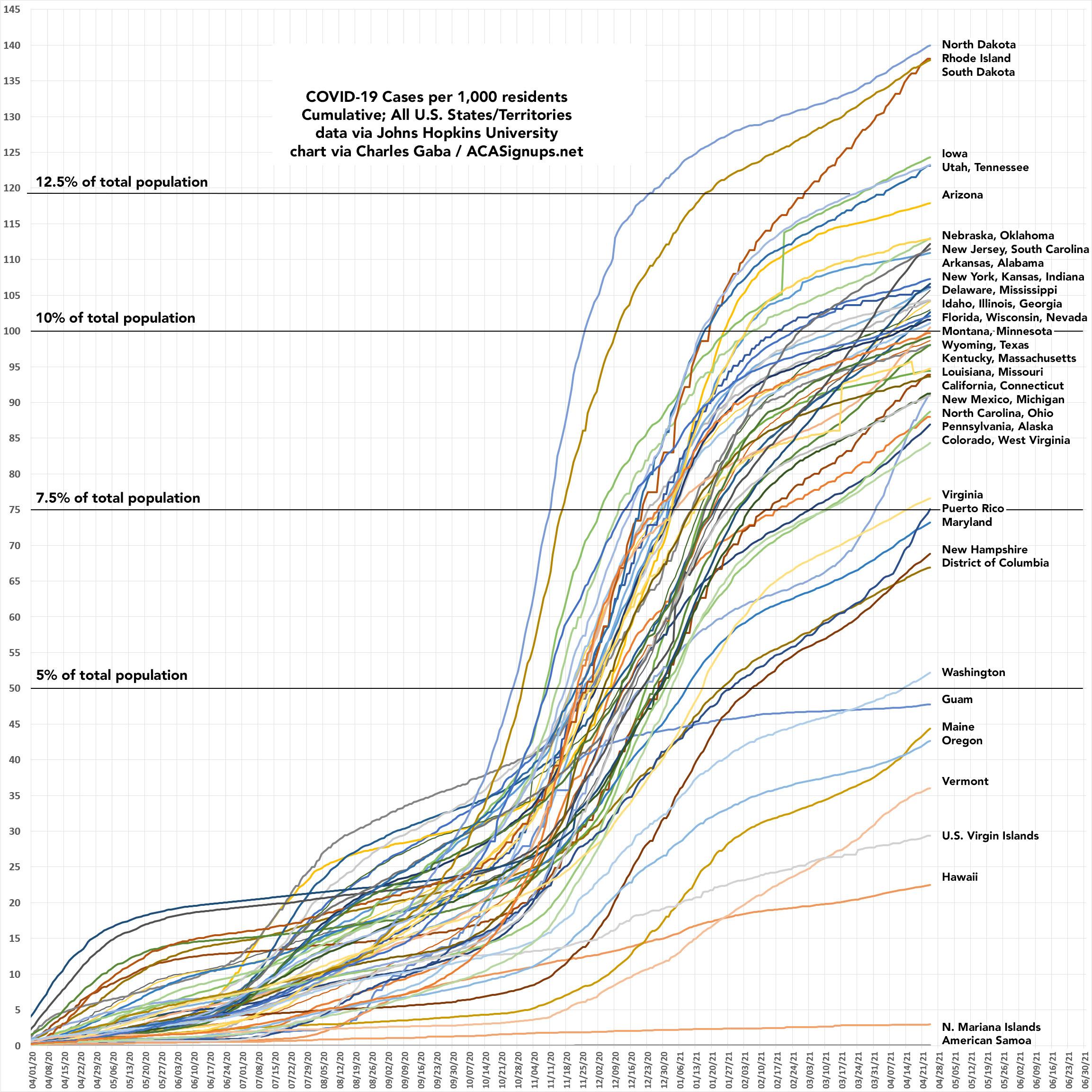 Nearly 1 out of every 7 residents of North Dakota and Rhode Island have tested positive for COVID-19 to date.