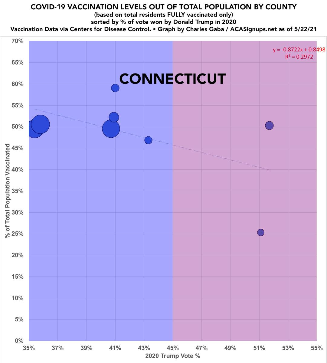 Connecticut: #COVID19 vaccination rates by county & partisan lean