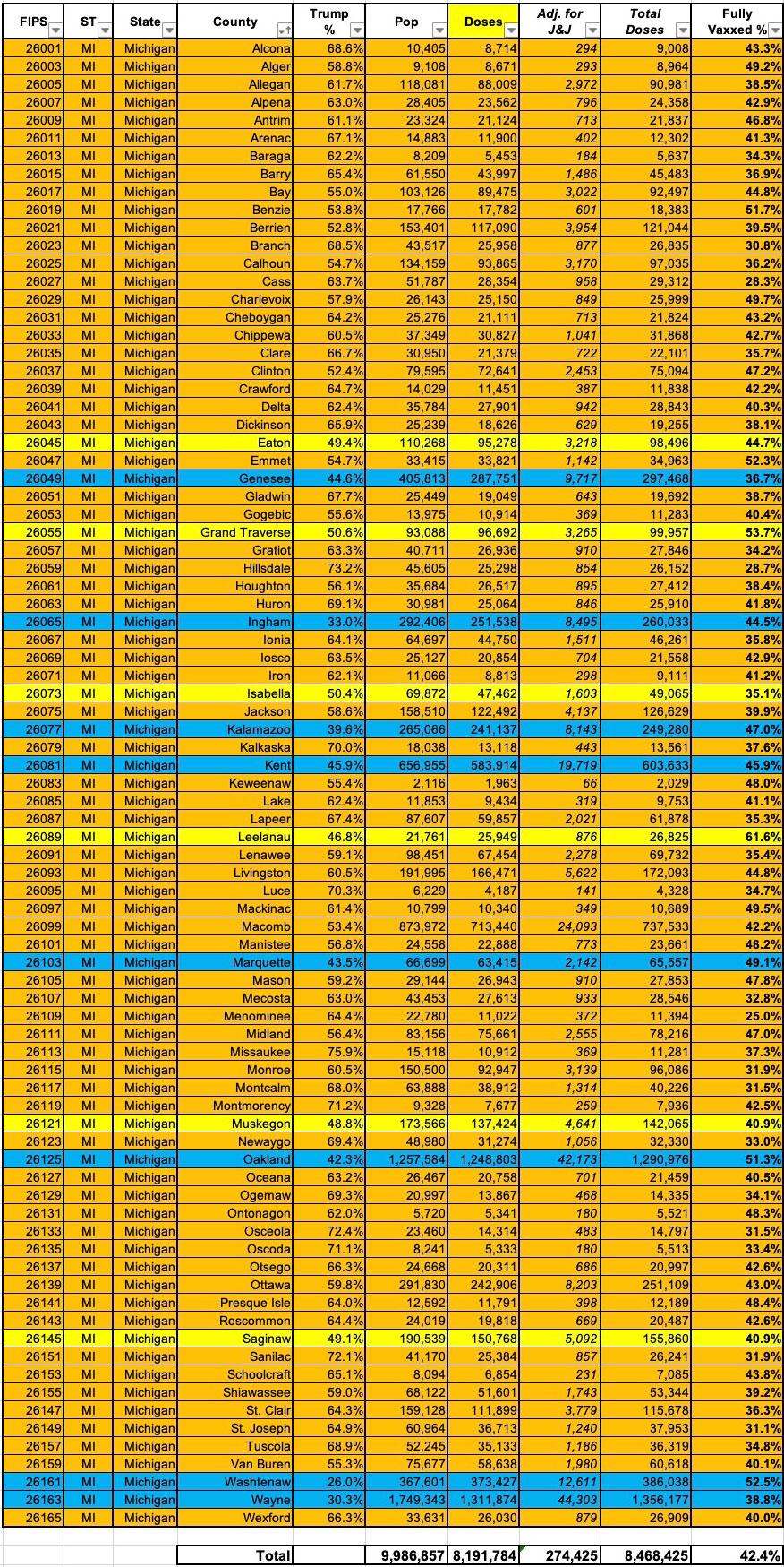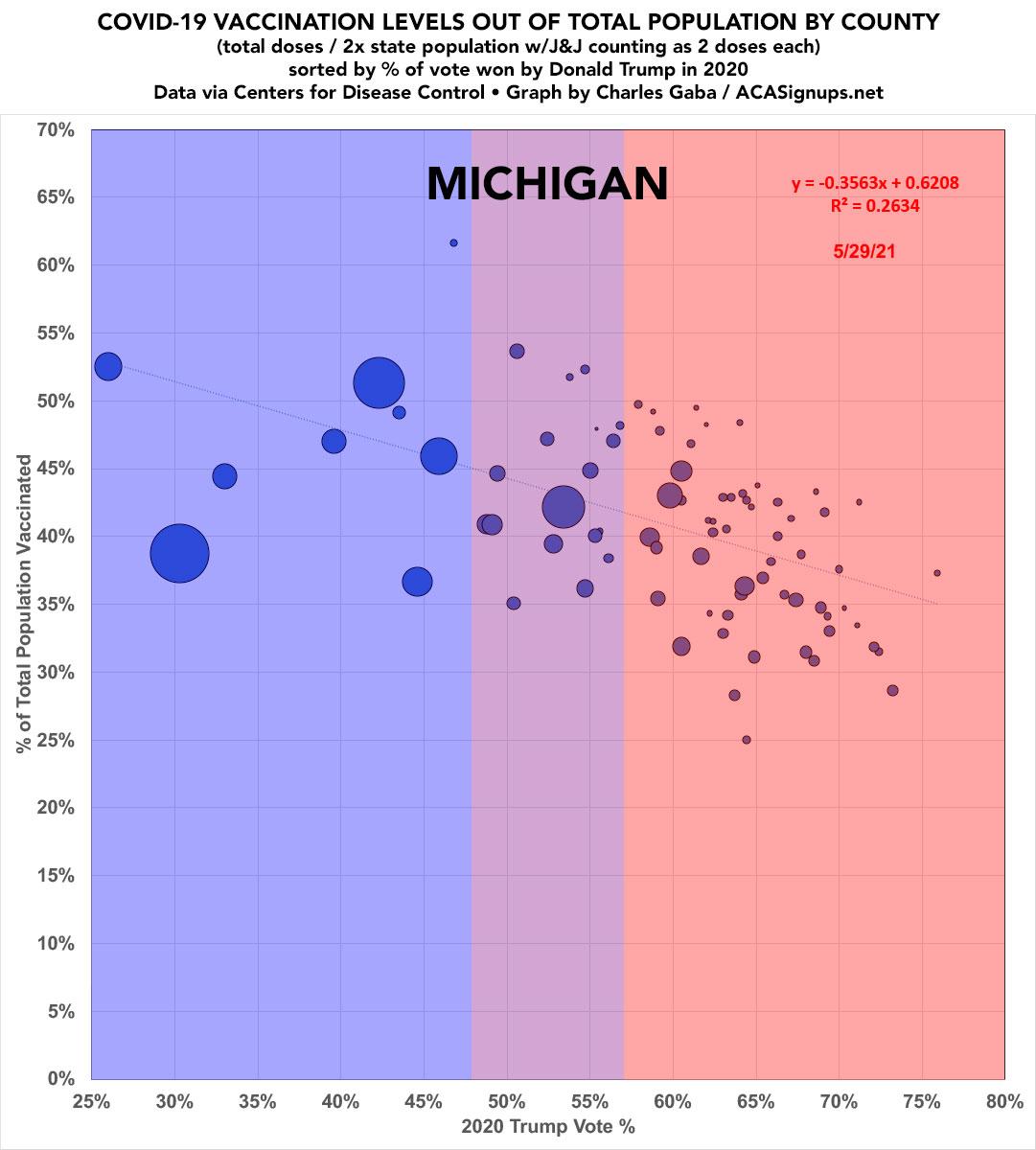 UPDATE: Michigan: #COVID19 vaccination rates by county & partisan lean