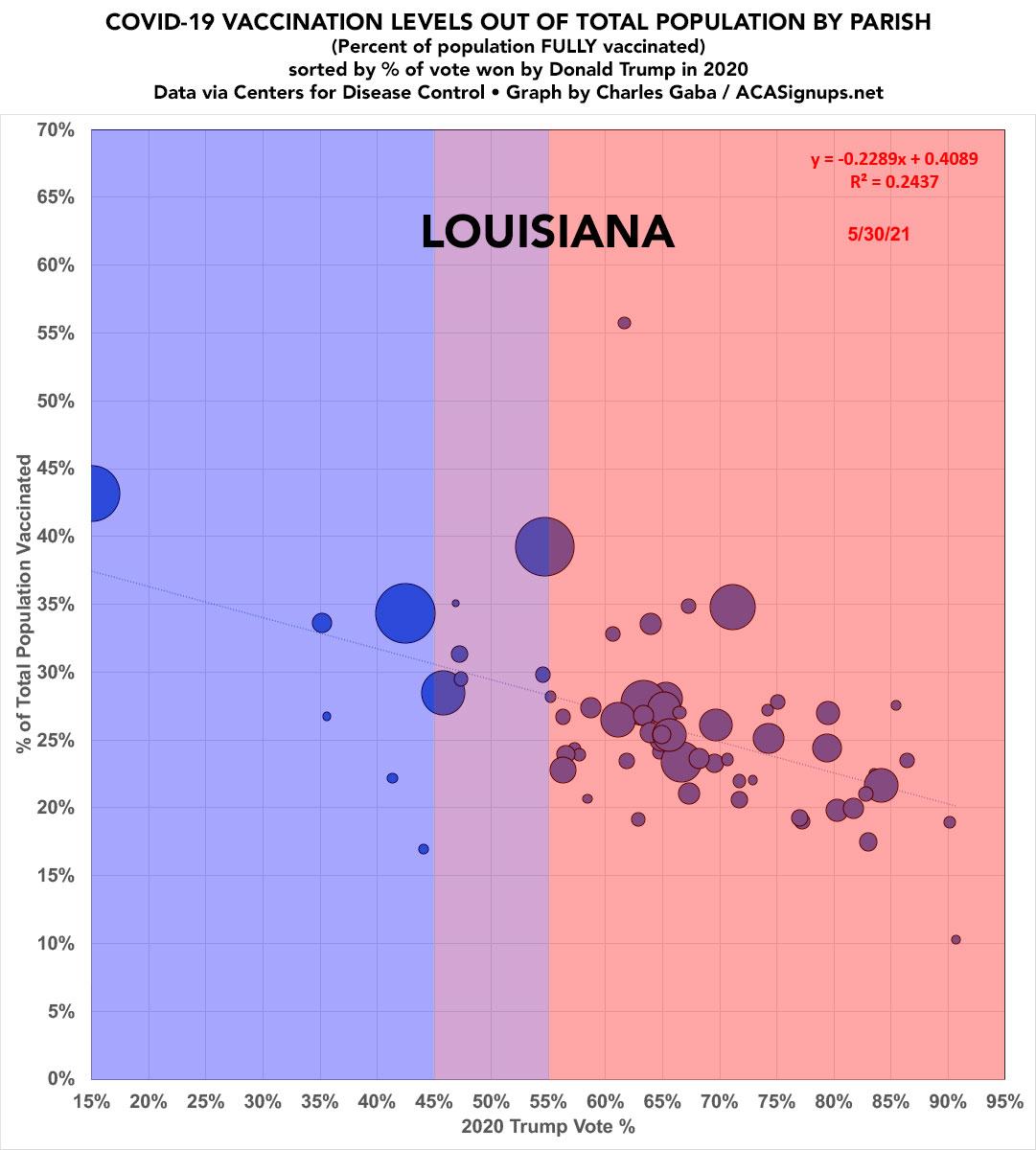 Louisiana: #COVID19 vaccination rates by parish & partisan lean
