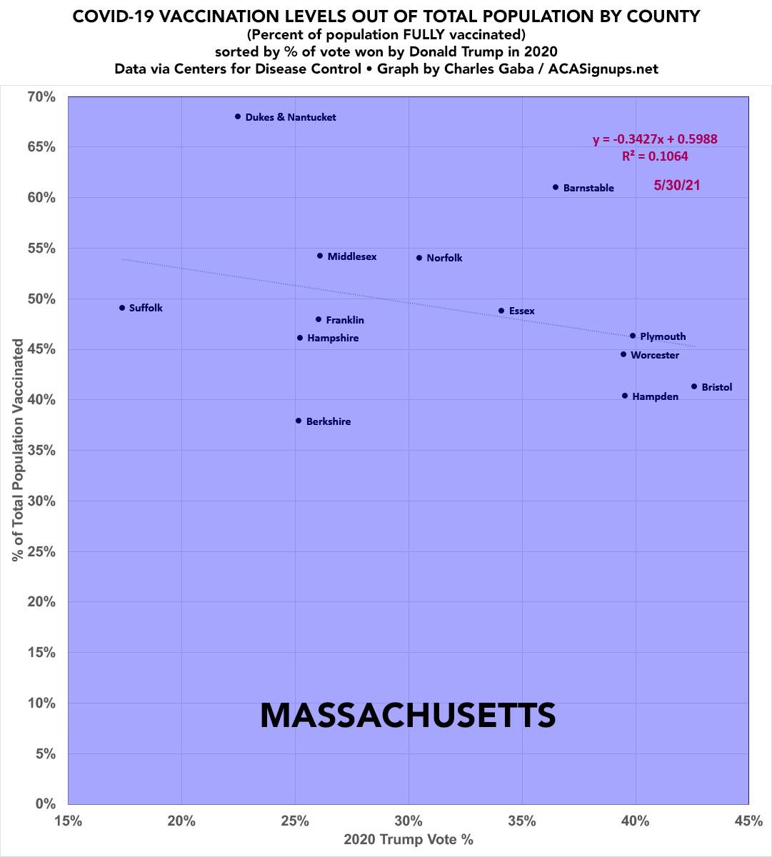 Updated: Massachusetts: #COVID19 vaccination rates by county & partisan lean