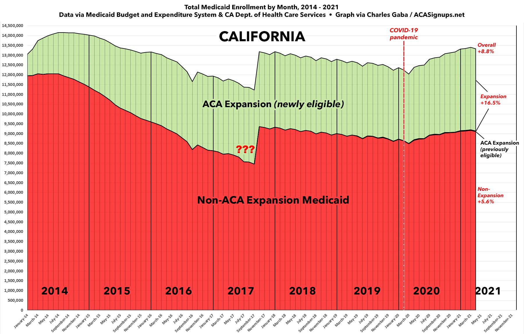 As an aside, this is a reminder of just how massive California's population is; their ACA Medicaid expansion population alone would be larger than the entire populations of 22 U.S. states.