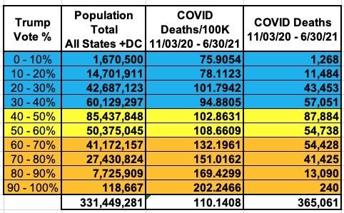 If you're surprised that there were more than 50% more Americans who died from COVID during the 8 months from the election through the end of June than there were in the 10 months from January - October 2020, you shouldn't be; remember, the daily death toll actually peaked in mid-January of this year, just before President Biden took office.