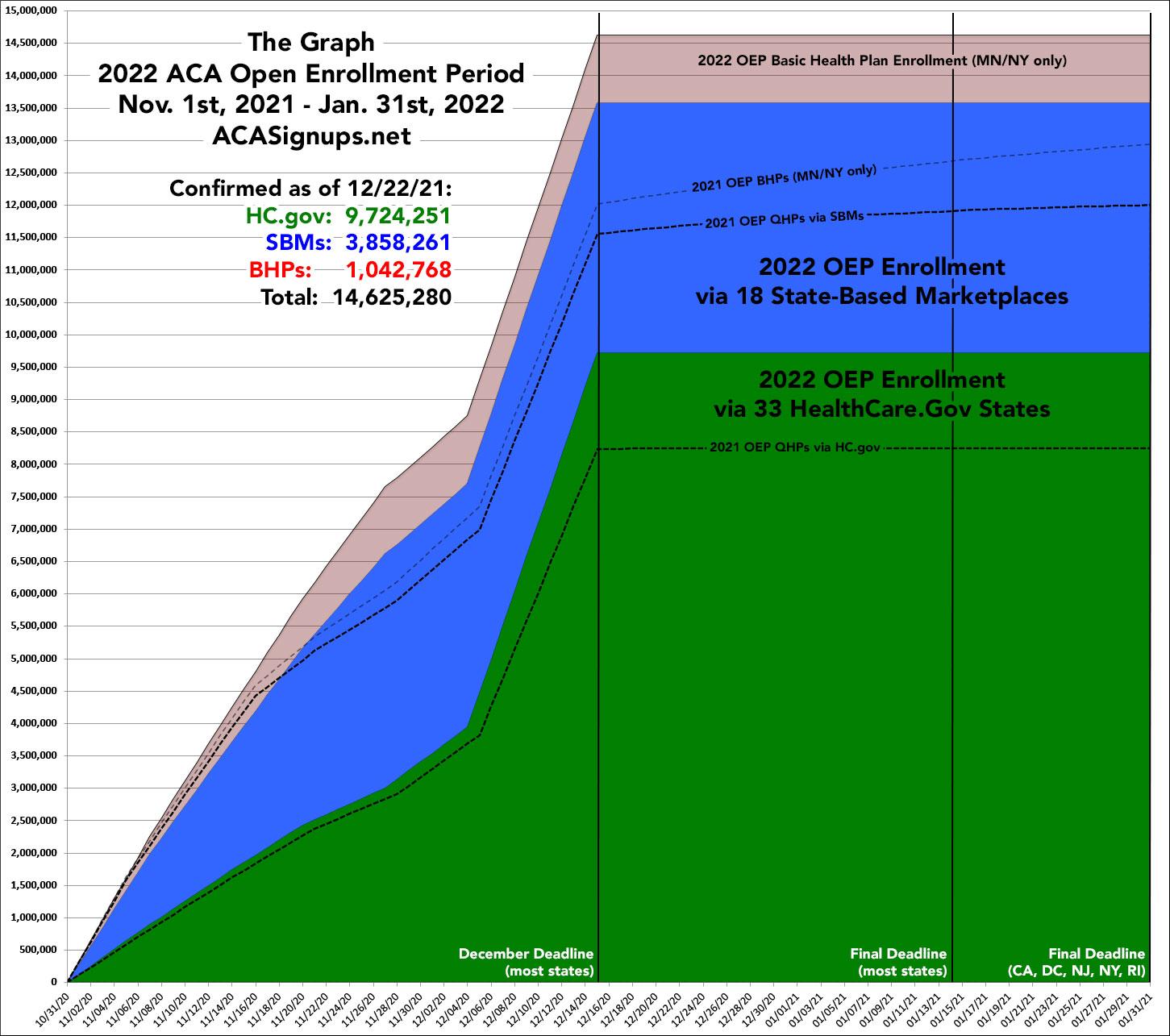 Tack on the million or so BHP enrollees and total 2022 OEP enrollment has already broken 14.6 million nationally. And again, there's still nearly a month left for people to sign up for 2022 coverage in most states.