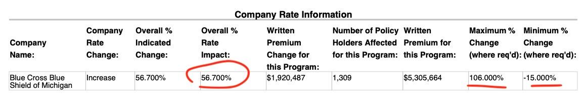 Update 8/25/22: FarmbellPSU in the comments was able to help me finally track down the 2022 BCBSM Student Health Plan (SHP) rate filing forms, and holy cats: It looks like there's only 740 enrollees total (across 257 households, or around 2.88 enrollees per household...which suggests a lot of middle-aged graduate students & their families, like ours).