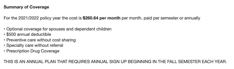 This could easily explain the dramatic spike, especially if they were expecting a high number of young undergrads this fall but ended up with a disproportionate number of older grad students instead. A handful of expensive enrollees, or a lot of enrollees ramping up utilization of services in the post-COVID world (yes, I know it's not over yet, but an awful lot of people seem to think it is) could easily skew the risk pool as demonstrated above.