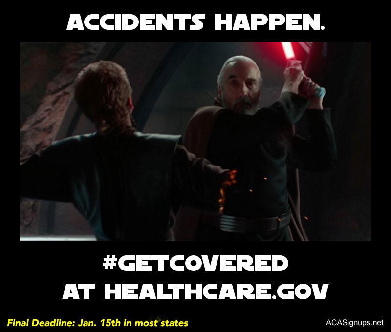 It's important to note that I've posted the "Star Wars"-inspired graphics to help promote awareness of the Open Enrollment Period deadline on Twitter for years without any complaints or takedown notices. In fact, I even posted these graphics (along with a dozen or so similar ones) on Mastodon about a month ago to promote the initial December 15th deadline, again, without any problems or complaints.