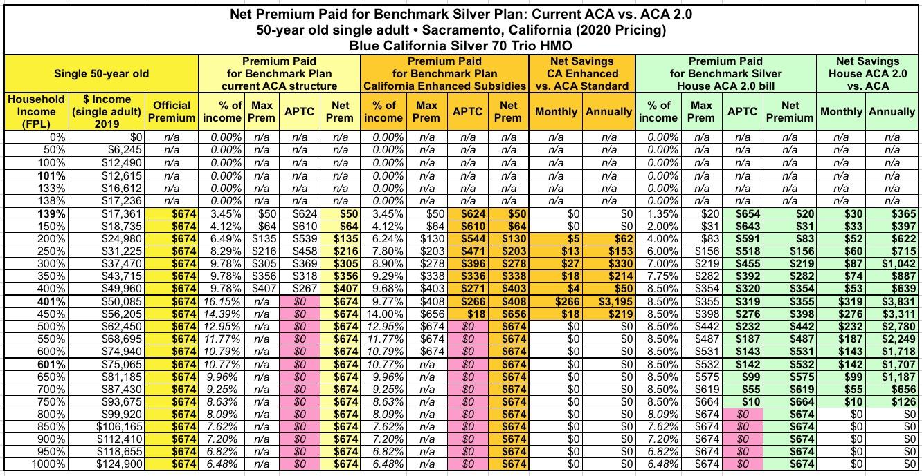 IMPORTANT: As I've noted before, Covered California has arranged to expand and enhance their ACA premium subsidies beyond the official ACA formula starting with the 2020 Open Enrollment Period. Back in October, I posted a detailed analysis, complete with tables and graphs to explain just how much hundreds of thousands of Californians could save under the new, beefed-up subsidy structure.
