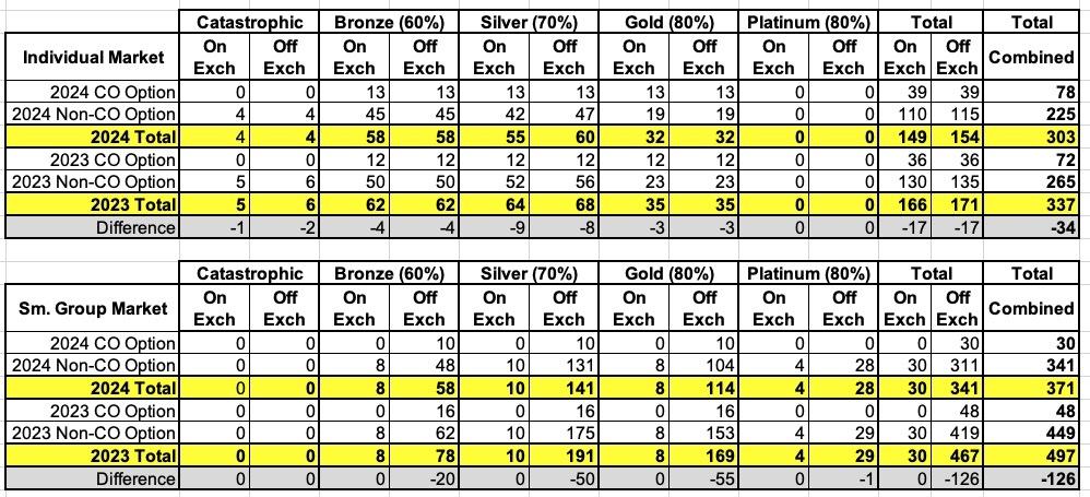 The most noteworthy developments below are that in addition to Friday, Oscar and Bright Health Plans all leaving the Colorado market (as documented/reported on several times earlier this year), Aetna and Humana both appear to be dropping out of the states small group market.