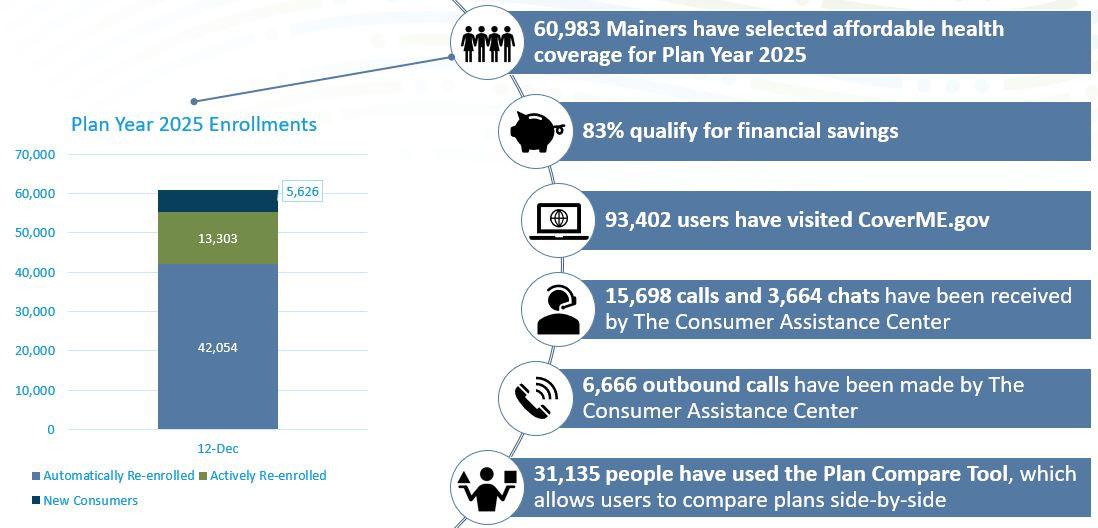 Maine: coverME reports 61K QHP enrollees thru 12/12, enrollment up 2.2% y/y so far